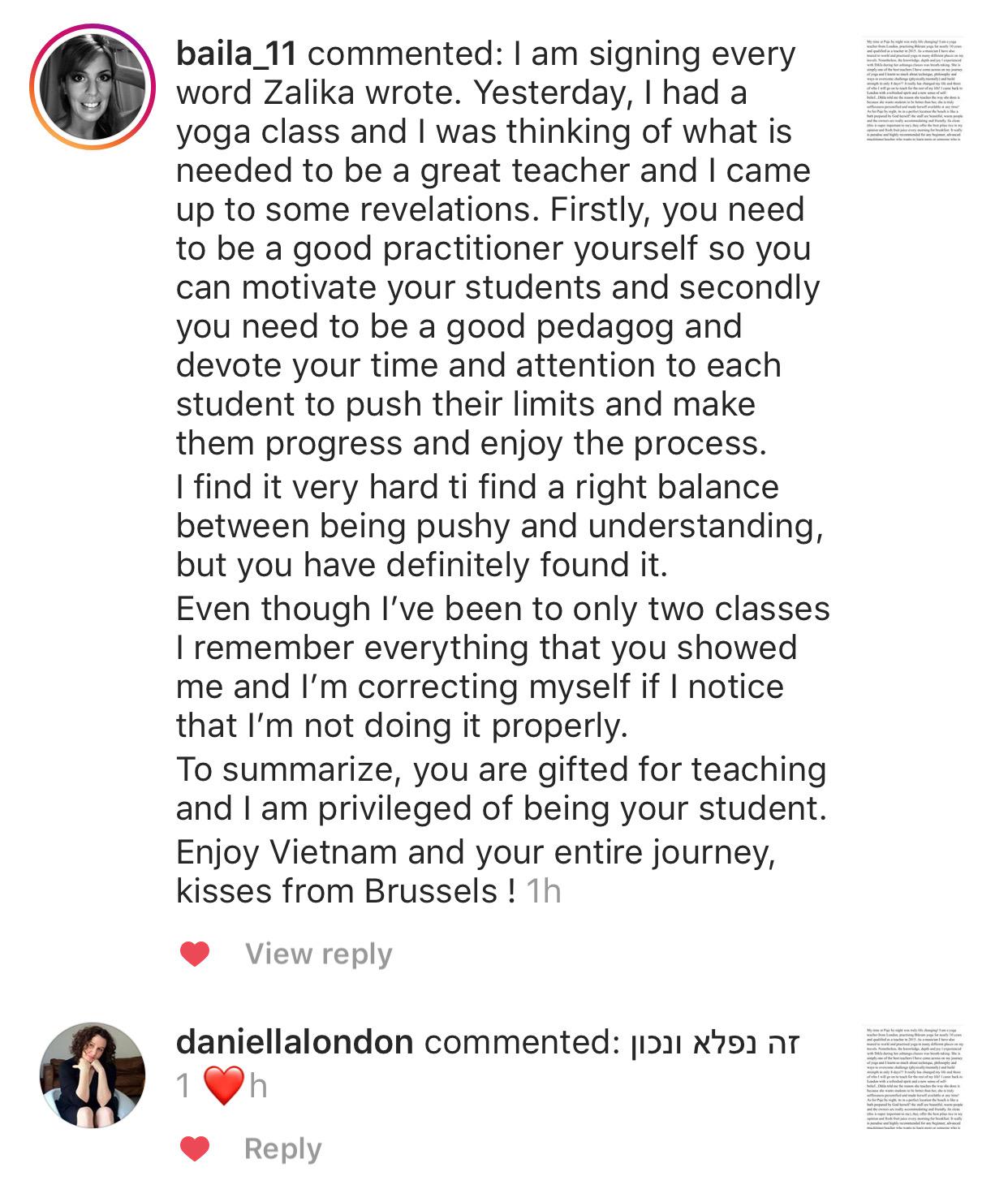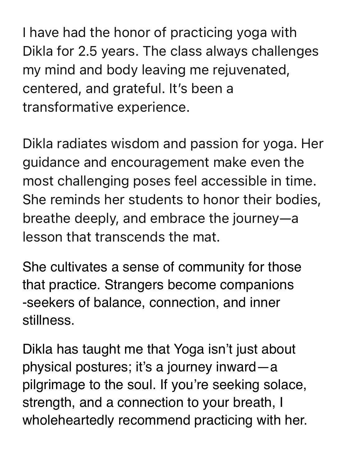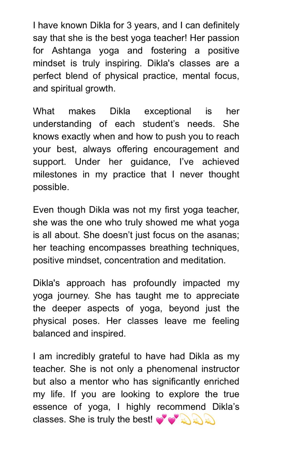 לימדתי ברחבי העולם אלפי מתרגלים, ואני יודעת לגעת בלבבותיהם, לחבר אותם מחדש לגופם, לקרב אותם אל נשמתם, ולעזור להם להתאהב בעצמם דרך התרגול.